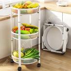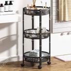 ワゴン キャスター付き バスケット付き 折りたたみ キッチンワゴン 3段 北欧 おしゃれ 丸形 台所 ラック 収納ワゴン リビング ランドリー ストッカー 収納