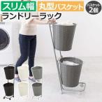 洗濯かご ワゴン ラック かご スリム 収納 おしゃれ ラタン調 キャスター付き 丸型 カゴ2段 約幅36.5×奥行37×高さ109cm ランドリーラック RAN-2431 (H)