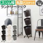 洗濯かご ワゴン ラック かご スリム 収納 おしゃれ ラタン調 キャスター付き 丸型 カゴ3段 約幅36.5×奥行37×高さ129cm ランドリーラック RAN-2432 (H)