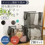 25日まで3%値引き|収納バスケット ランドリー ダブル メッシュ製 折りたたみ 洗濯物入れ 持ち運び便利 脱衣 洗濯 すき間収納 2個セット