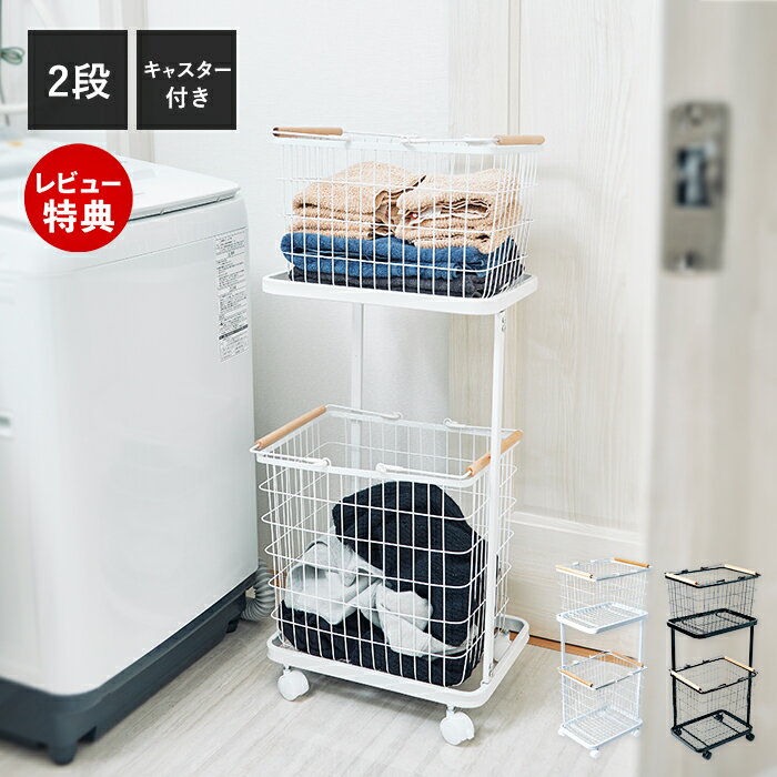ランドリーバスケット キャスター付き 2段 おしゃれ 洗濯かご ランドリーワゴン 収納ラック 洗濯物入れ スチール 大容量 持ち手付き 収納 洗面所 脱衣所 山善