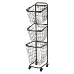 3段ランドリーラック 角型 幅33cm 丸型バスケット 分別 隙間利用 省スペース キャスター付き