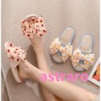 厚底スリッパ レディース おしゃれ かわいい サンダル ぺたんこ フラット リボン 前あき 幅広 ルームシューズ 可愛い ベランダ 室内 外履き