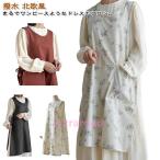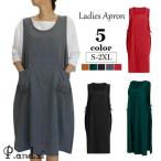 エプロン ワンピース風 レディース プルオーバー 膝下丈 ミディ丈 サイドリボン ポケット付き ゆったり 大きいサイズあり 女性用 婦人用 無地 ソリ