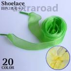 靴紐 靴ひも シューレース 1ペア 平紐 リボン オーガンジー 透け感 シアー 靴アクセサリー 幅広 単色 無地 かわいい おしゃれ カラバリ豊富 ス