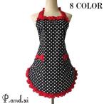 エプロン コットン 綿 ドット フリル 家事 キッチン カフェ ネイルショップ 美容室 防汚 かわいい ポケット リボン 8カラー 72cm 72cm