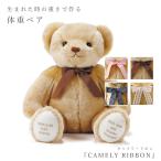 体重ベア キャメリーリボン(1体) 足裏 イニシャル 固定メッセージ 体重 くま ぬいぐるみ 結婚式 両親 プレゼント 出産 記念 名入れ