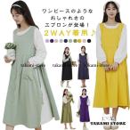 かぶるだけ ロングエプロン サイドリボン ドレスエプロン エプロン 2way着用!エプロン ワンピース ポケット付き 女性用 ワークエプロン ぽっちゃ