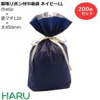 梨地リボン付巾着袋 紺 LL 200枚梱包 梨地/LDPE サイズ:巾450×底マチ120×丈(リボン下)560(420)mm