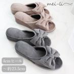 スリッパ 4cm リボン ヒール パンタロン 来客用 暖かい 秋 冬 厚底 前あき 室内 ルームシューズ 送料無料 1足販売