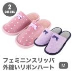 ニッポンスリッパ フェミニンスリッパ 外縫いリボンハート