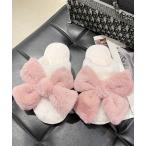 スリッパ ビッグ リボン フラット ファー スリッパ
