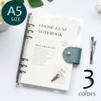ルーズリーフ A5サイズ 6穴 クリアバインダー ホルダー DIY手帳 取り外し可 レザー調ベルト スナップボタン ノートブック メモ帳 ステーショナ
