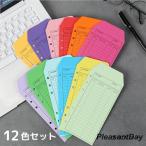 封筒 カラー封筒 長封筒 雑貨 文房具 文具 6穴 12色 12個セット 事務用品 カラフル ルーズリーフ用 バインダー用 月謝袋 集金袋