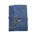 OVERDOSE ハンドクラフト ブルーフラワー アンティーク レザージャーナル トレジャーキー金具付き