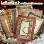 レターセット 便箋 手紙60種+封筒 クラフト ブラウン 60枚セット 素材 紙 ペーパー コラージュ 水彩 イラスト スカラップ レース 繊細 美麗 月 星
