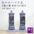 墓前用 石のローソク立 2型小型 台石(小)付き 1対2本セット 墓前ローソク立 蝋燭 ろうそく ロウソク お墓参り お盆 お彼岸