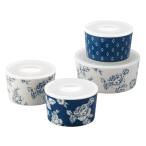 ローラアシュレイ レンジパック 蓋付 ノンラップ 小鉢 サマーローズ (大 直径13cm×1 小 直径9.5cm×3) 4種 青 食器セット ふた付