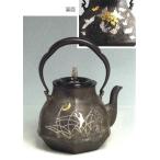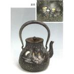 鉄瓶 龍文堂写 鶴首秋草紋 象嵌入 幅15×奥行12×高さ20.5cm 1.1L 蝋型鋳鉄製 桐箱入t120-02
