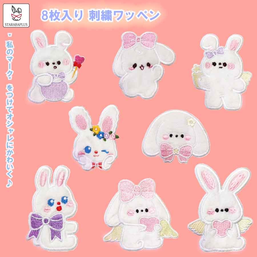 「★3点で20%OFF&10倍」8枚入り 刺繍ワッペン アップリケ アイロン 刺しゅうパッチ かわいい ウサギ 補修パッチ 膝補修 肘補修 縫い付け 洋服 手袋 帽子 かばん 手芸 手作り DIY 飾り メール便 送料無料