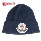 MONCLER モンクレール BERRETTO TRICOT HAT ビーニー 帽子 ニット帽 ニットキャップ ラバーワッペン ロゴ ニット帽 ネイビー【中古】