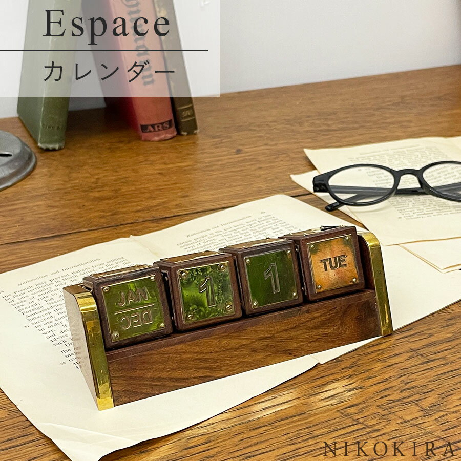 【5%OFFクーポン3日20時〜】 カレンダー 万年カレンダー 木製 おしゃれ 大人 アンティーク インテリア 北欧 雑貨 卓上カレンダー ブロック 書斎 デスク 小物 置物 飾り ウッド 木 インテリア雑貨 輸入雑貨 アジアン カッコいい ギフト ゴールド 真鍮 ブラス エスパス