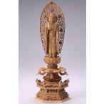 仏像 白檀 舟立弥陀 六角台座ケマン付 飛天光背 金泥書 6.0寸 阿弥陀 浄土宗
