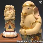 彩色歓喜天 双身立像 高さ33cm 楠製 木彫り 仏像