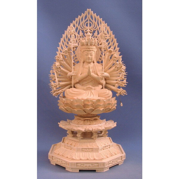 仏像 千手観音 座像 6.0寸 総高60cm 飛天光背 八角台 桧木