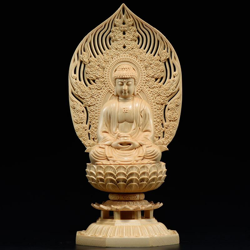 【クーポン利用で10%OFF】送料無料 仏像 阿弥陀如来 仏像 大日如来像 蓮華座 桧木 3.5寸 木彫 細工木彫 風水 開運 工芸品置物 家庭応接間置飾 (28.5*12*12cm)