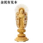 仏像 柘植 丸台座(蓮華) 西立弥陀 櫛飛天光背 金泥無 3.5寸 爆買