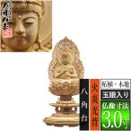 仏像 ご本尊 総ツゲ 新八角台座 座弥陀 飛天 金泥書 3寸 仏壇用 仏具