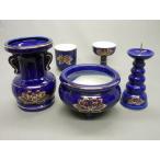 仏具 セット 陶器5点 (瑠璃 金蓮 ルリ キンハス) + 香炉灰 仏具セット おしゃれ モダン 国産 日本製 仏壇セット モダン仏具 モダン仏壇 お盆 お彼岸 お墓参り お供え 供養 法事 法要 神棚 神具 仏具 盆提灯 やまこう 山幸