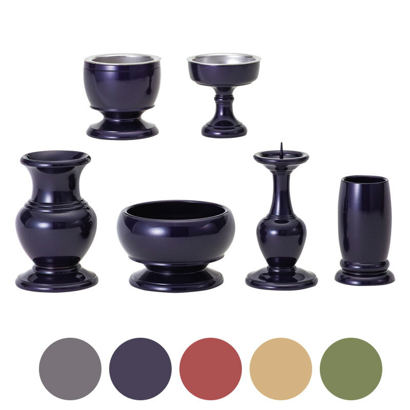 【お買い物マラソン10%OFF】【五具足】 六角菖蒲型 色付 3寸/仏具 高級仏具 仏壇仏具 仏具セット