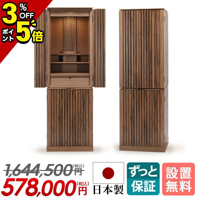 【P5倍+3%OFFクーポンあり★スーパーセール限定】日本製 仏壇 おしゃれ 高級ウォールナット無垢 お仏壇 国産 広島県 府中市 モダン仏壇 直置き リビング 高級仏壇 収納仏壇 台付き 床置き リビング仏壇 保障付き 設置無料 和室 洋室【もり ウォールナット 15×46号】