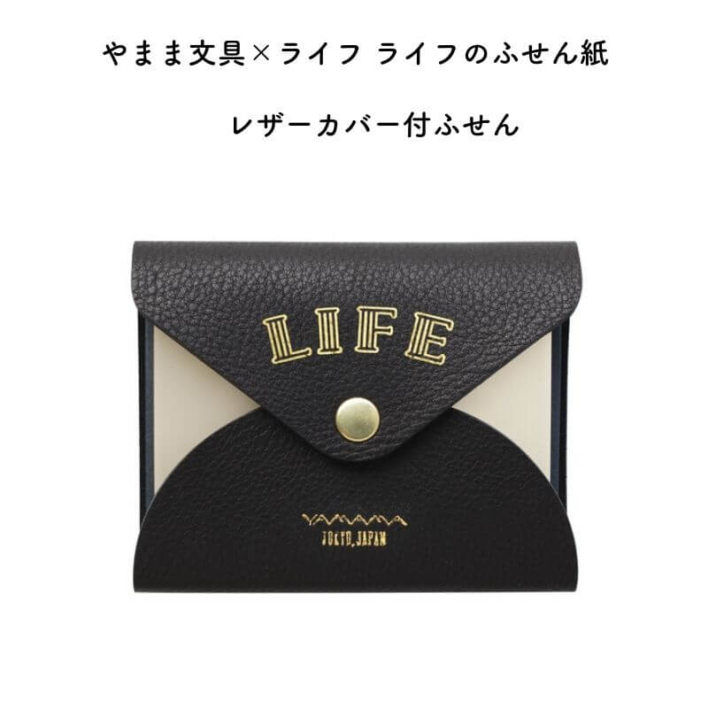 やまま文具 × LIFE レザーカバー付きふせん紙 無地 [ブラック]ライフ 33-YL01 *ネコポス不可*ライフのふせん紙 付箋 革 持ち運び コンパクト