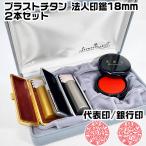 ブラストチタン印鑑2本セット 代表印18ミリ+銀行印18ミリ (ブラック&シルバー)鑑定機械彫り会社印鑑・ケース付きセット