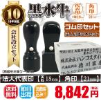 【即日発送可】代表印18mm(天丸)角印21mm はんこ 黒水牛 印鑑 法人印鑑2本セット+ゴム印付