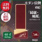 位牌 モダン位牌 綺羅・風桜 4.0号(16.7cm) 蒔絵入 ロイヤルレッド 送料無料 1霊分名入れ無料 仏具 お位牌