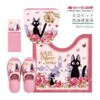トイレマットセット 4点 約60×60cm トイレマット+洗浄便座用フタカバー+スリッパ+ペーパーホルダーカバー (魔女の宅急便/ジジとデート) ピンク センコー