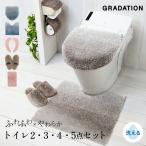 トイレセット 5点セット 兼用ふたカバー 吸着便座シート 足元マット トイレスリッパ トイレットペーパーホルダー トイレカバー グラデ ふわふわ 洗える 5y35500