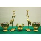 (花立や蝋燭立のセット)/本山彫り(鶴亀)具足 4.0寸 5具足 本金メッキ(マッチ消し、線香差し付き)
