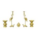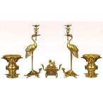 本山彫鶴亀 五具足(本金メッキ) 4.0寸