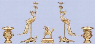 獅子掛中口 五具足 磨き 7寸(寺院用仏具)