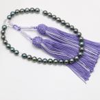 真珠 数珠 あこや真珠 数珠 アコヤ真珠 7.5mm-8mm 人絹グレー房 ブラックカラー ブラックパール 黒真珠 冠婚葬祭 葬儀 法事 14525