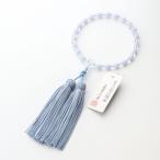 数珠 京念珠 女性用 水晶雫切子 8mm玉 共仕立 正絹房 薄青色