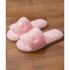 スリッパ バイカラー ロゴ刺繍 フラット ファー スリッパ
