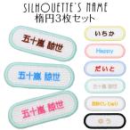 全品10%off/シルエット名札 楕円 3枚セット アイロン 名前シール ひらがな 漢字 ローマ字 刺繍 入園 入学 体操服