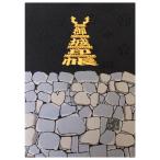 千糸繍院 謹製 御城印帳 西陣織 金襴装丁/石垣(黒×黒) 城デザイン表題刺繍 左頁PPポケット 蛇腹