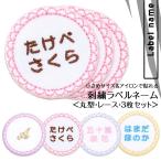 全品10%off/刺繍ラベルネーム 丸 レース お得な3枚セット アイロン 名前シール ひらがな 漢字 ローマ字 数字 刺繍